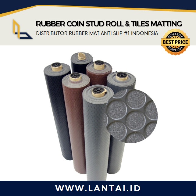 Karpet karet dibuat dari bahan daur ulang berkualitas untuk mengurangi bising, anti slip, dan tahan lama.